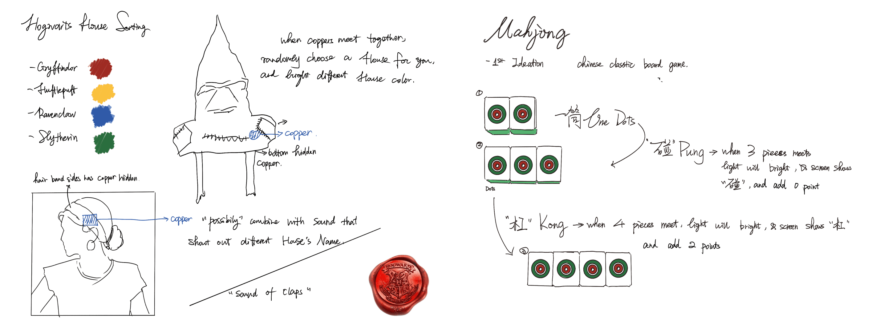This project involves creating an interactive Harry Potter Sorting Hat using an M5Stack development board, RGB LEDs, and copper plates as sensors. When the circuit is completed (by touching two copper plates), the hat begins a sequence of flashing colors representing Hogwarts houses: Gryffindor (red), Ravenclaw (blue), Hufflepuff (yellow), and Slytherin (green). After the flashing, a random house is selected, and the corresponding color lights up. The program announces the house, completing the magical sorting experience.