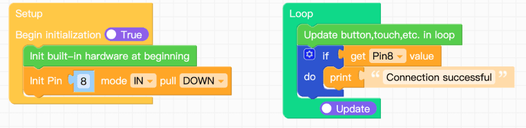 Circuit Connection Initialization : Sets Pin G6 (GPIO Pin 1) as an input with an internal pull-up resistor. This pin detects the circuit's state (closed or open), i.e., whether the copper plates are touching.