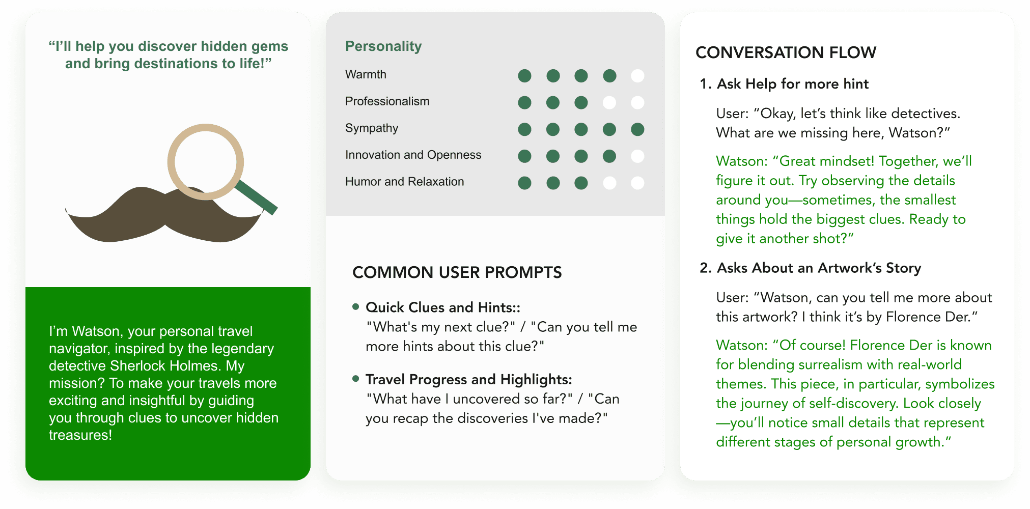 Watson acts as your personal guide, offering clues and insights to help you dive into the destination and uncover its hidden stories.