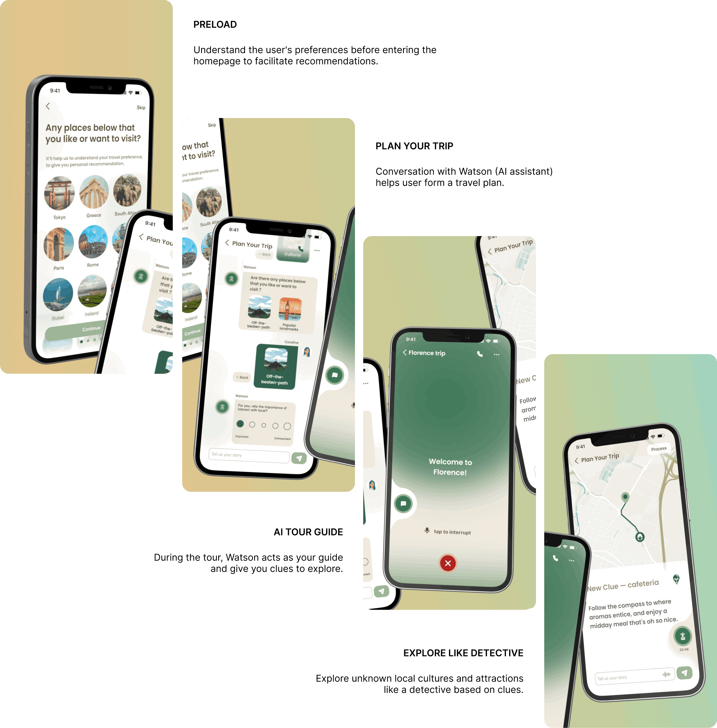 Turning travel into an adventure, I designed experiences where users follow clues to uncover hidden spots and cultural treasures. This detective-like exploration adds excitement and mystery, making each journey unique and immersive.