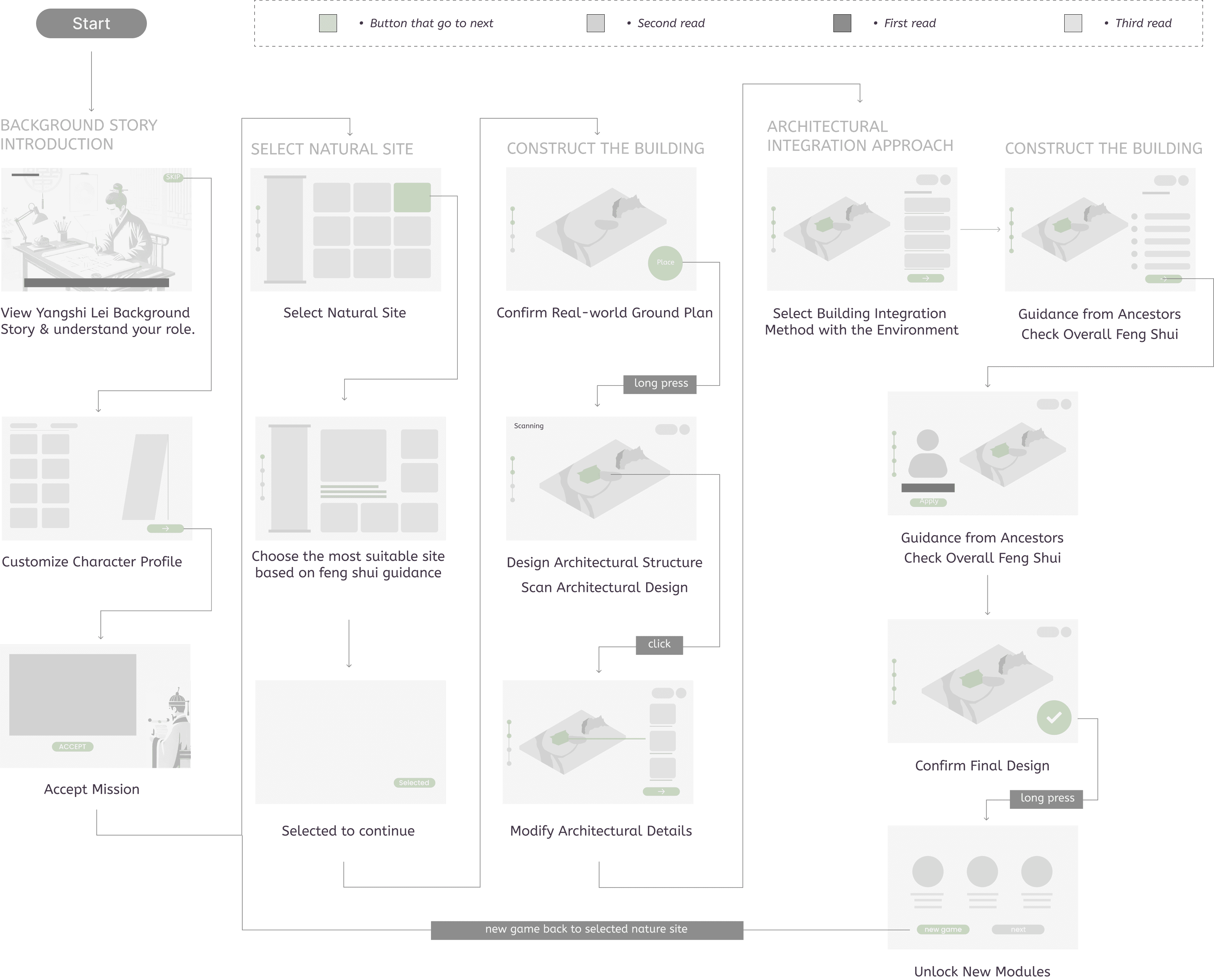 Starting from analyzing what young users enjoy, I decided to create a game that blends Reality, Digital, and VR elements, and have since developed a comprehensive user flow to bring this vision to life.