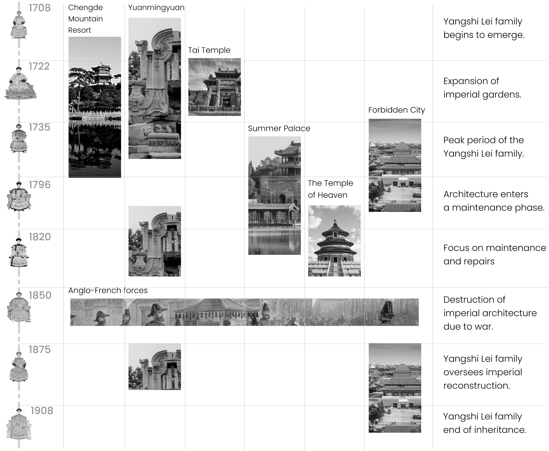 Yangshi Lei family served eight emperors in imperial architecture during the Qing Dynasty, spanning 200 years .
